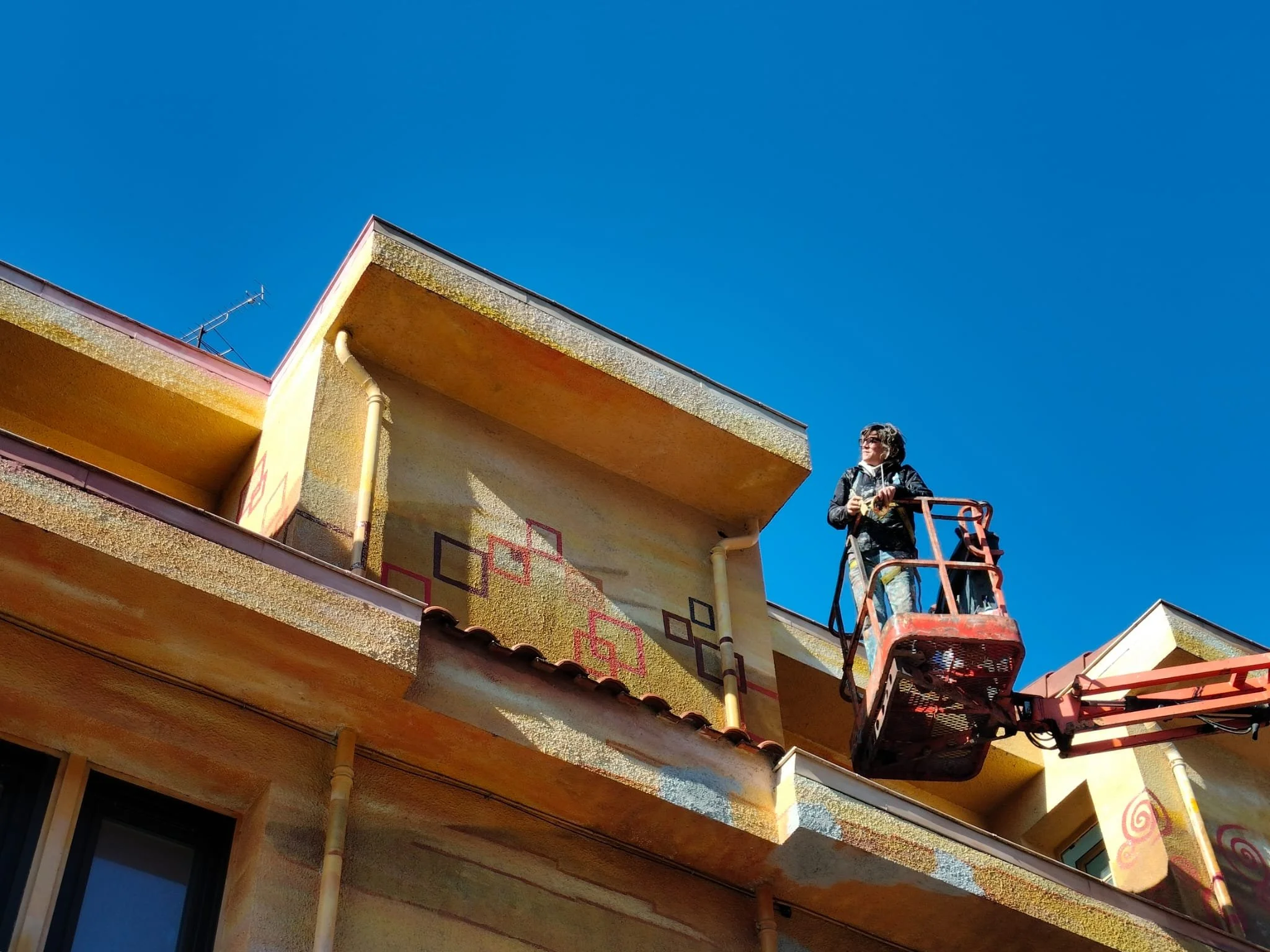 Her public practice spans more than 30 years. Since 1993, beginning with the Social and Public Art Resource Center in Los Angeles, she has worked with city governments, schools, institutions, and private clients across Spain and the United States to create large-scale murals designed to belong to the places they inhabit. In 2007 she co-founded the Mural Itinerary of Vitoria-Gasteiz, a programme of 19 collaborative large-scale murals that transformed the city centre.